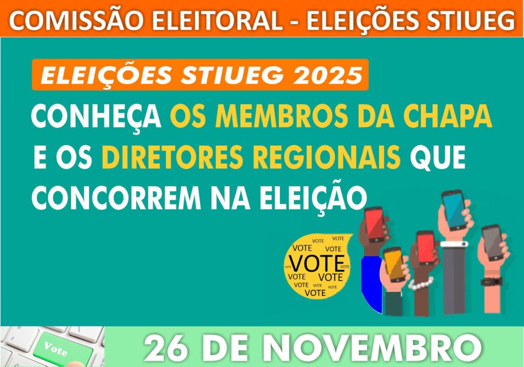 Apresentamos os Integrantes da Chapa Resistir Sempre Juntos! e os Diretores Regionais de Base, que disputarão as eleições do STIUEG para o Triênio 2025/2028.